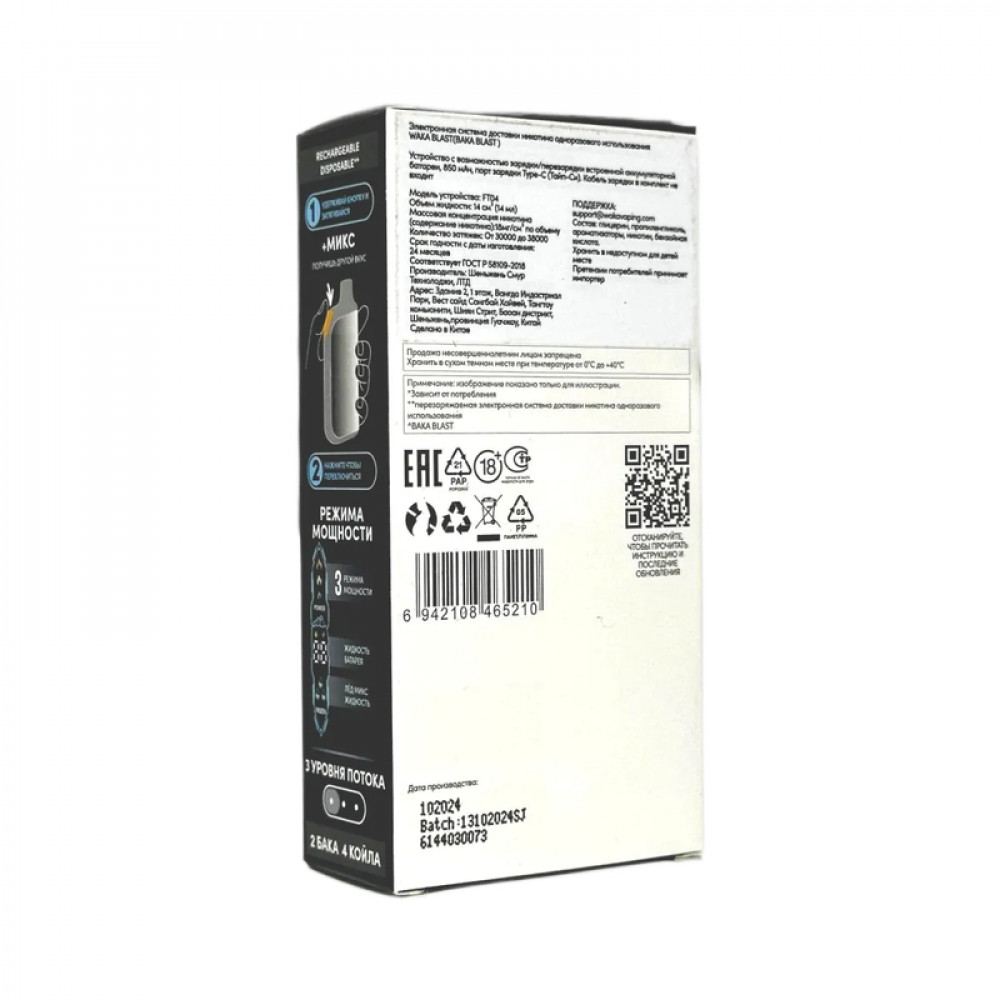 | Аромат/вкусМентол + лед микс | БрендWAKA | ДисплейДа |